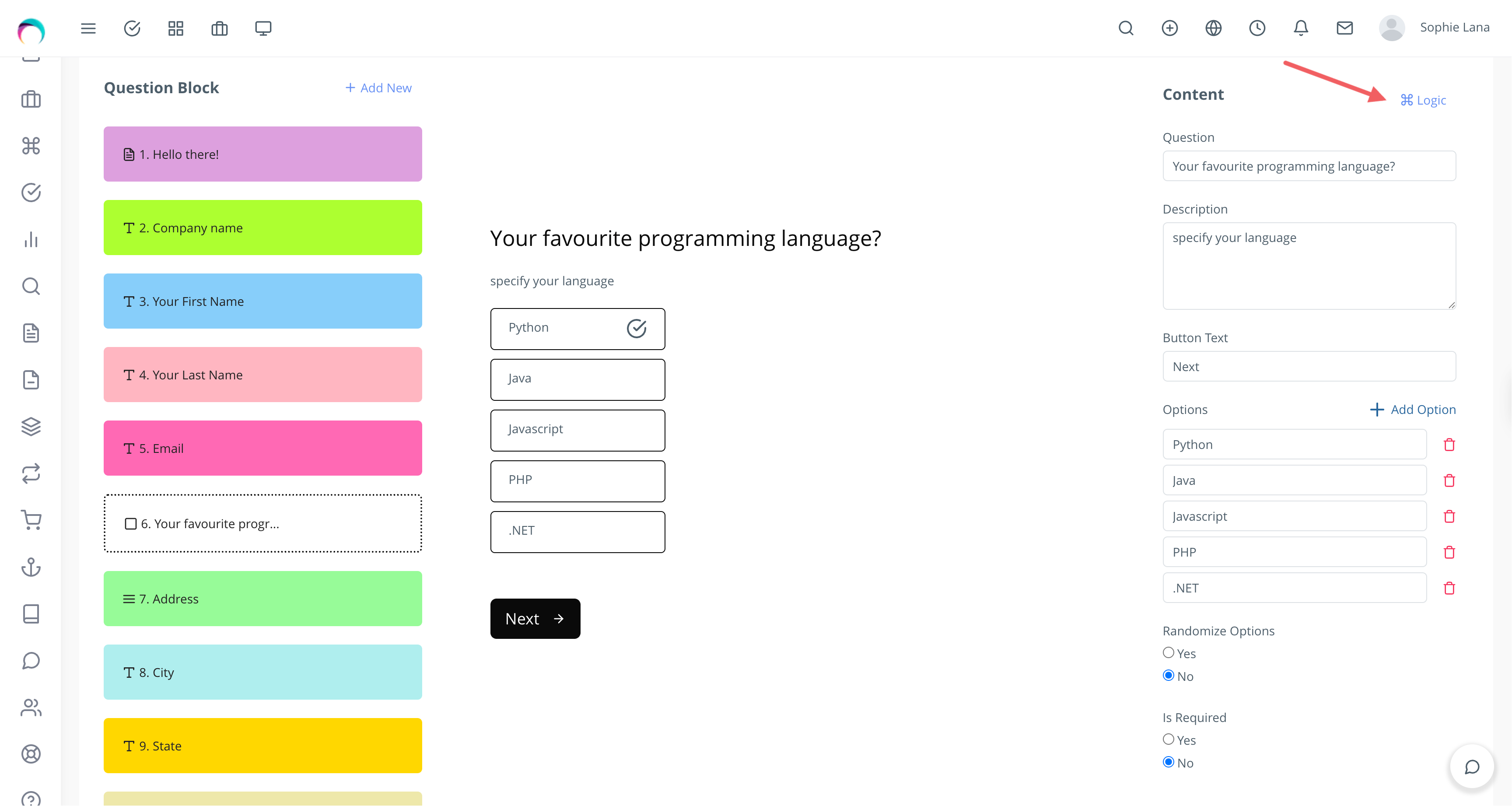 Choose the Field you want to add the Logic to