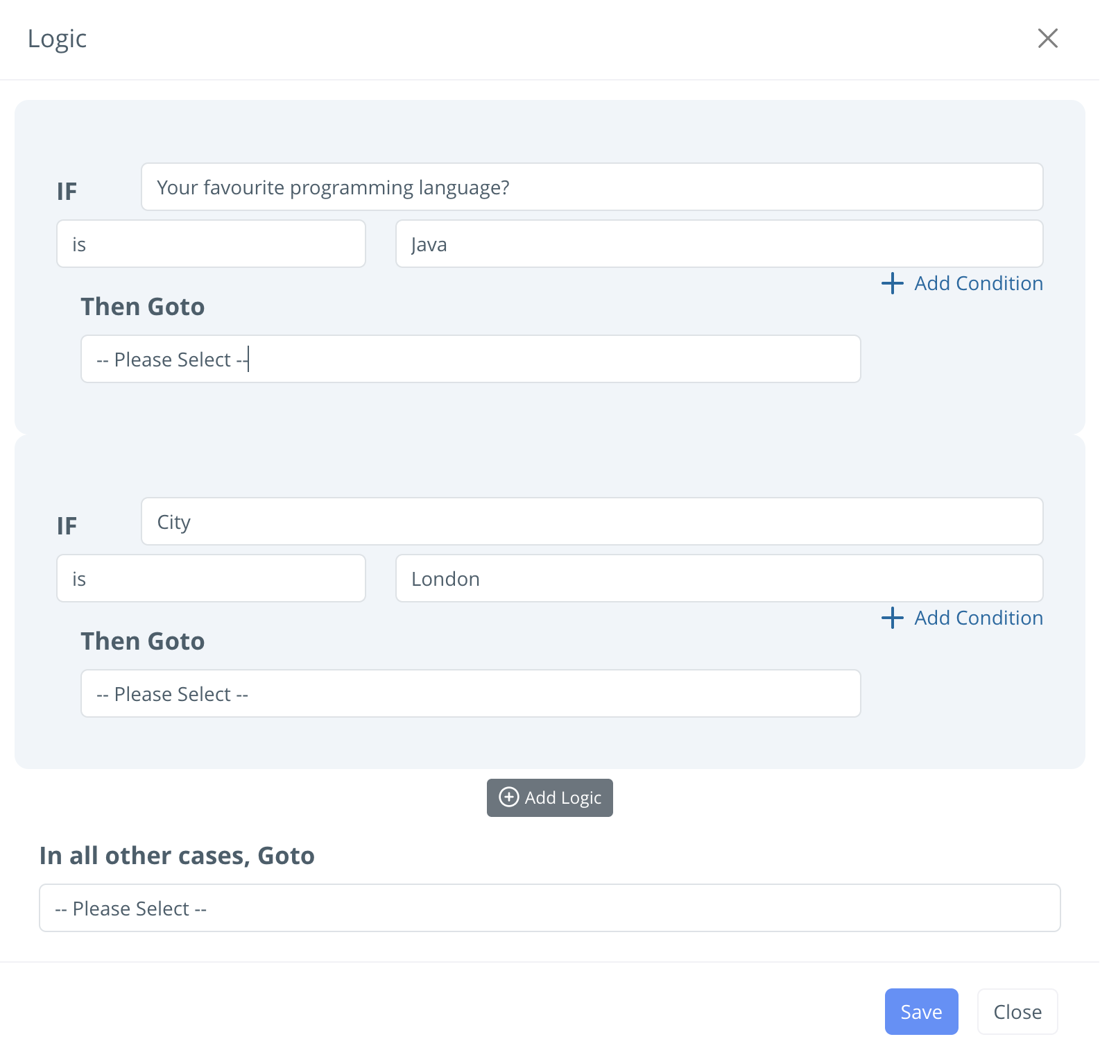 Once you have added the Logic, the Goto Field will only be displayed if the Condition is Met